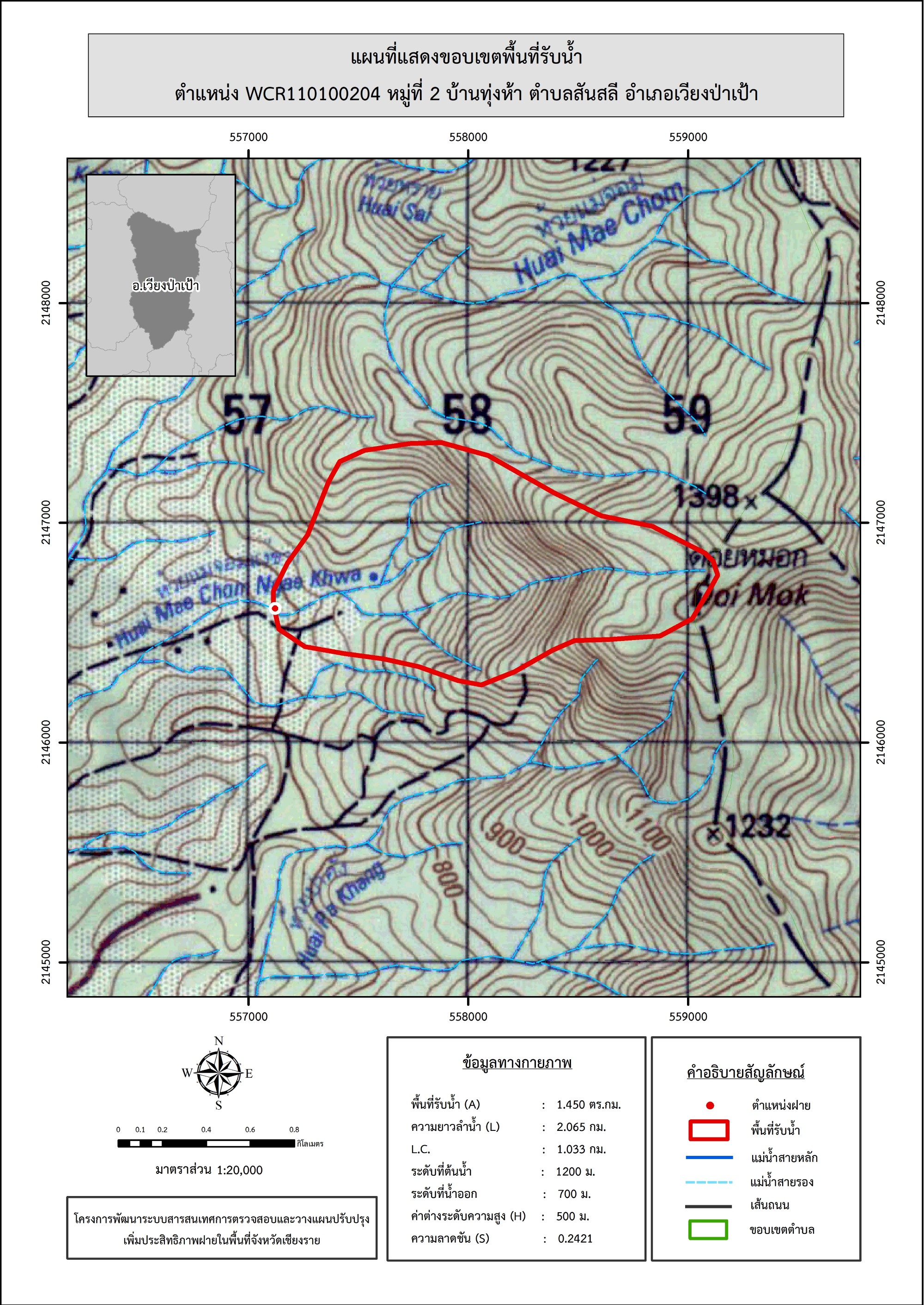 รูปภาพแผนที่แสดงขอบเขตพื้นที่รับน้ำ